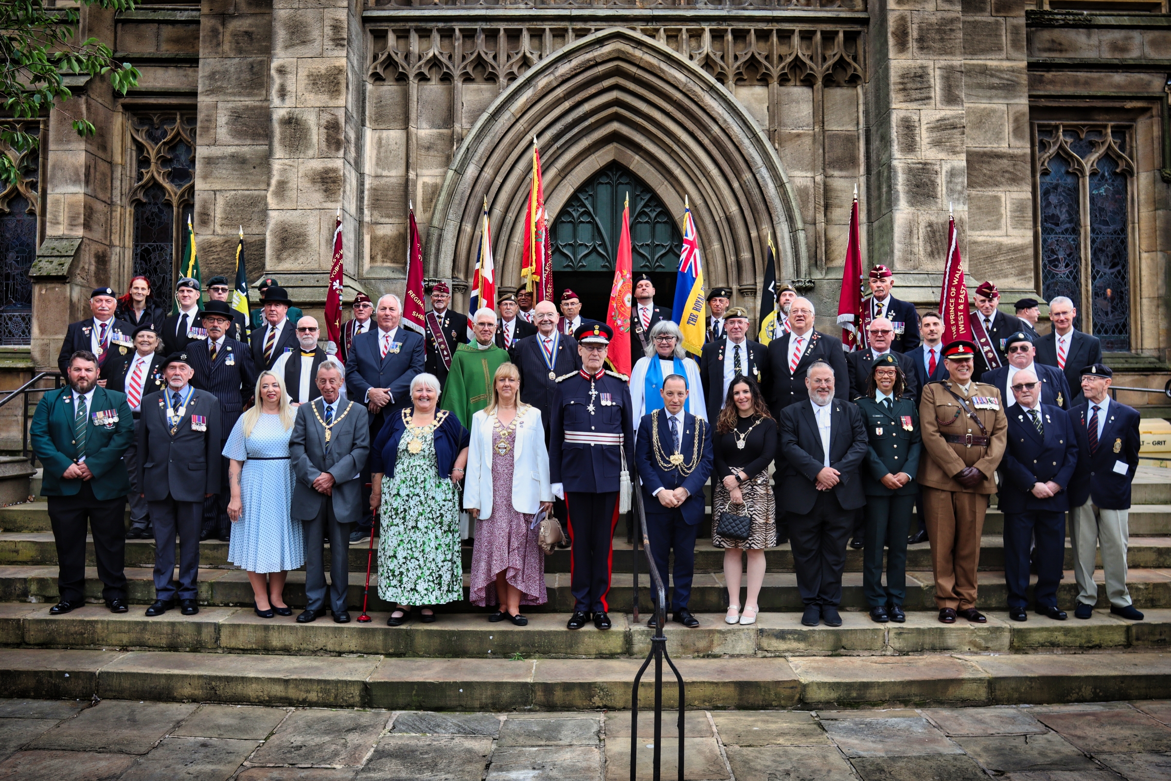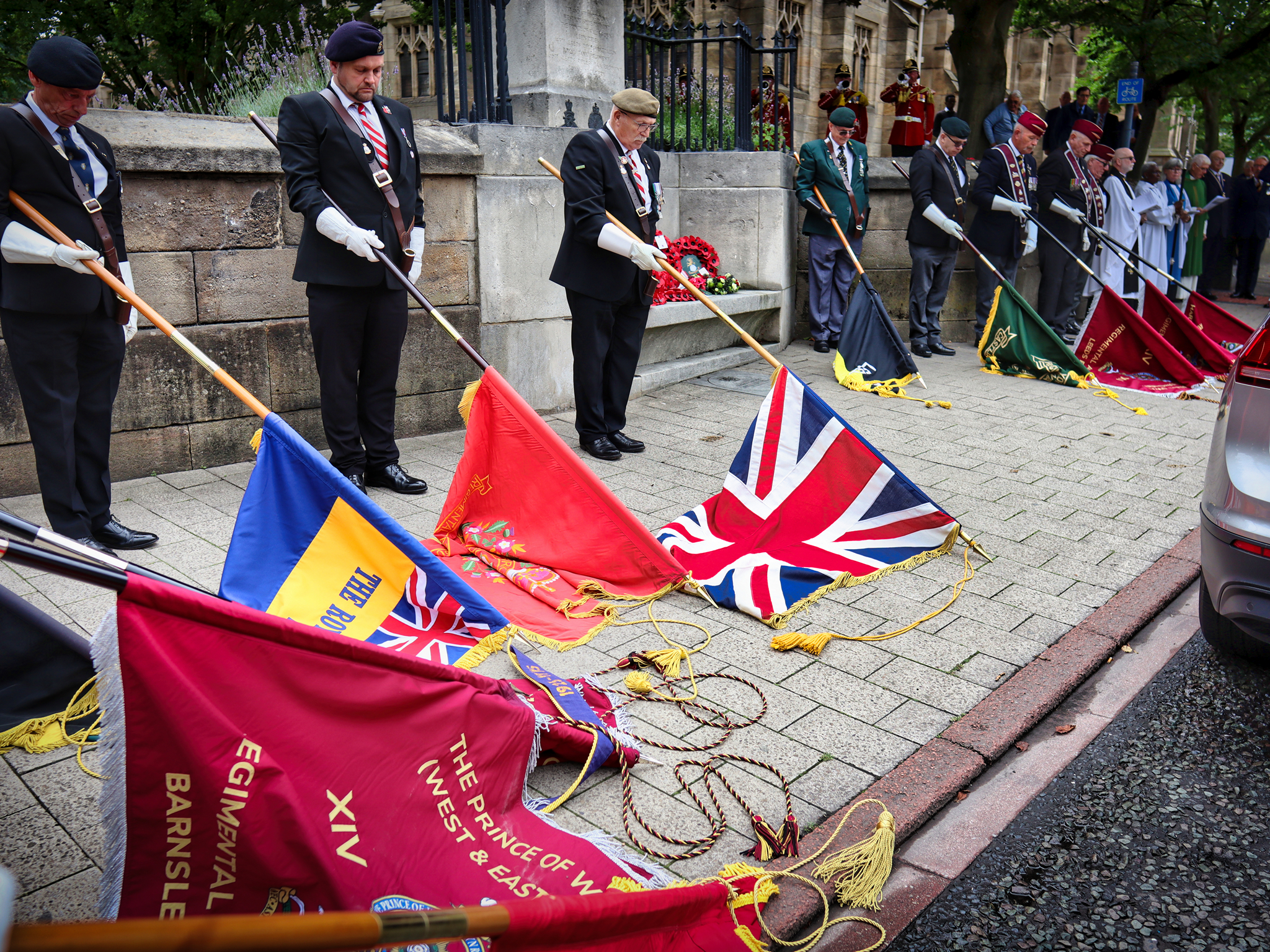 Members of the Castleford Branch and Leeds Branch of the YVRA, as well as the Lord Mayor of Leeds, the Mayor of Morley, Territorial Soldiers and a member of a Canadian Regiment.